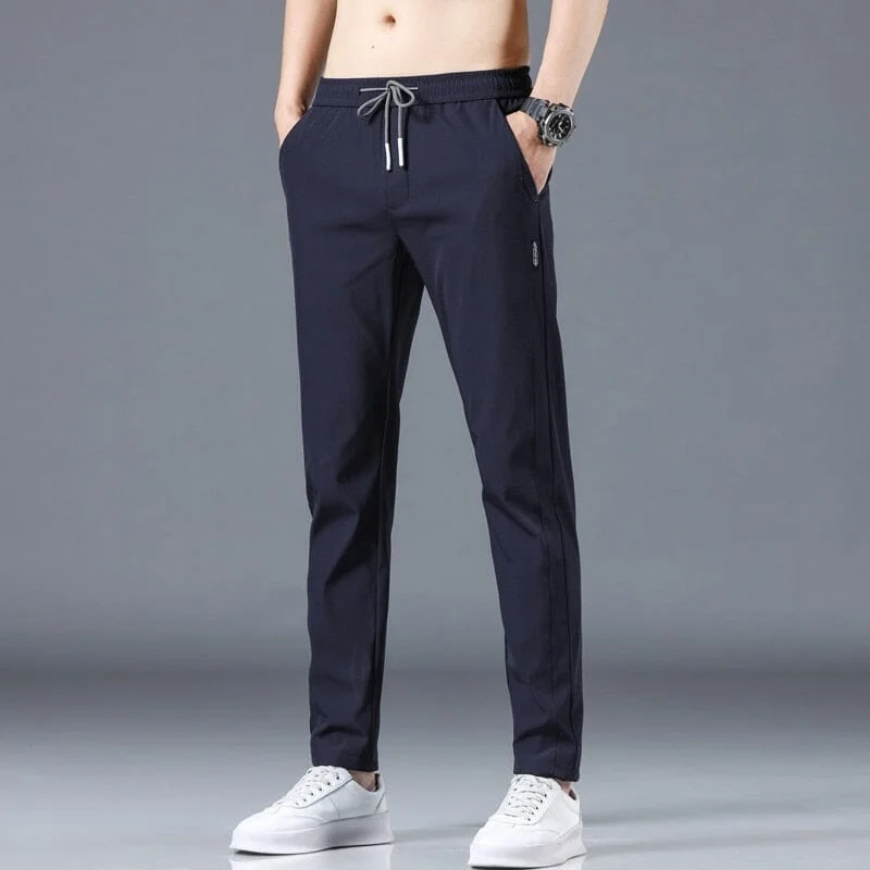 Calça masculina clássica produzida com tecido ultraleve, resistente e elástico de textura lisa, ideal para quem busca conforto, qualidade e flexibilidade em uma só peça.
